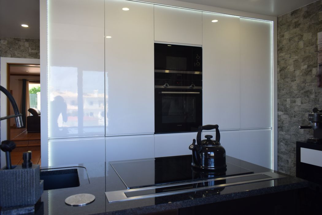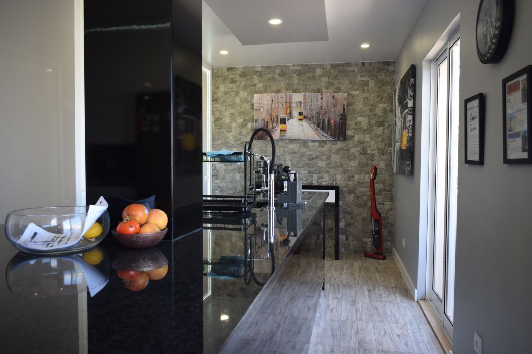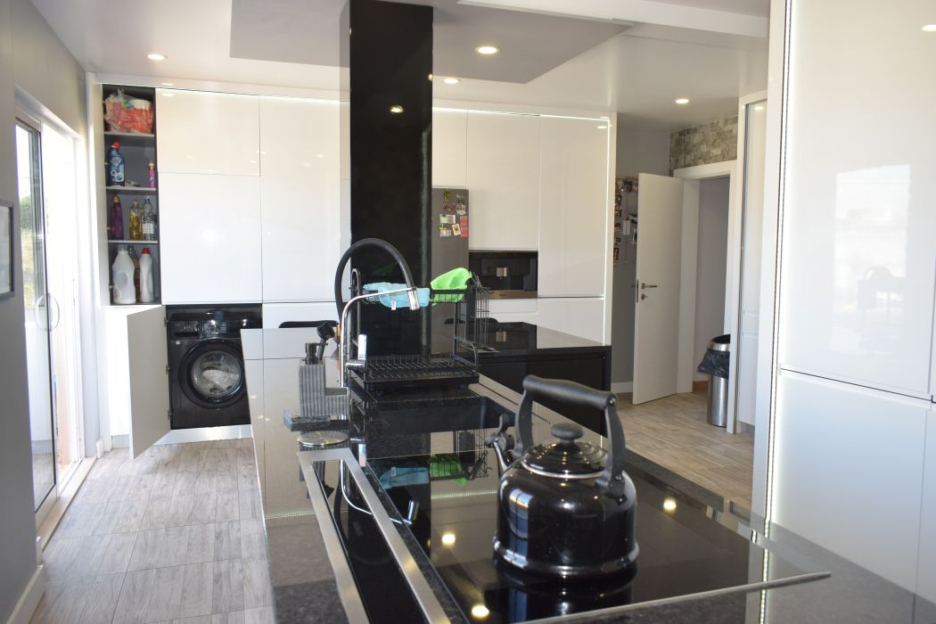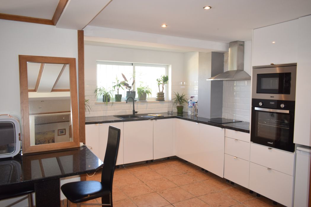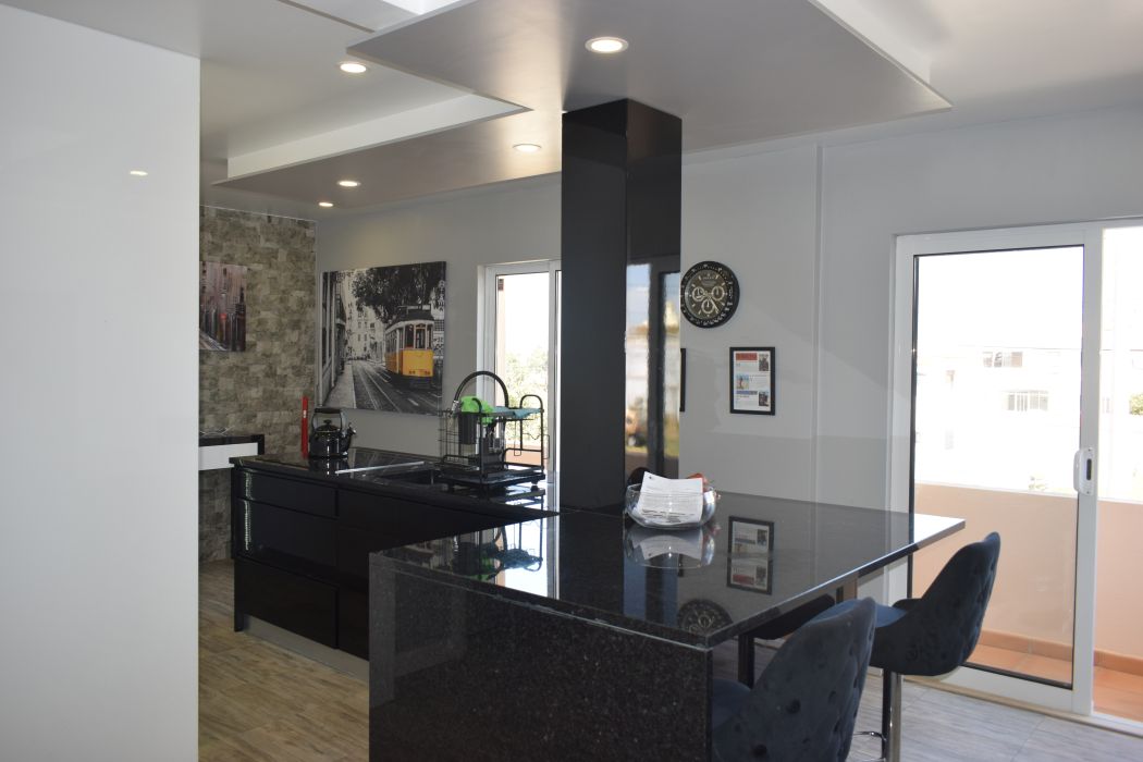 The kitchen’s direct connection to the balcony allows for seamless indoor-outdoor living, a key feature for properties in the Algarve where sunshine is abundant year-round.